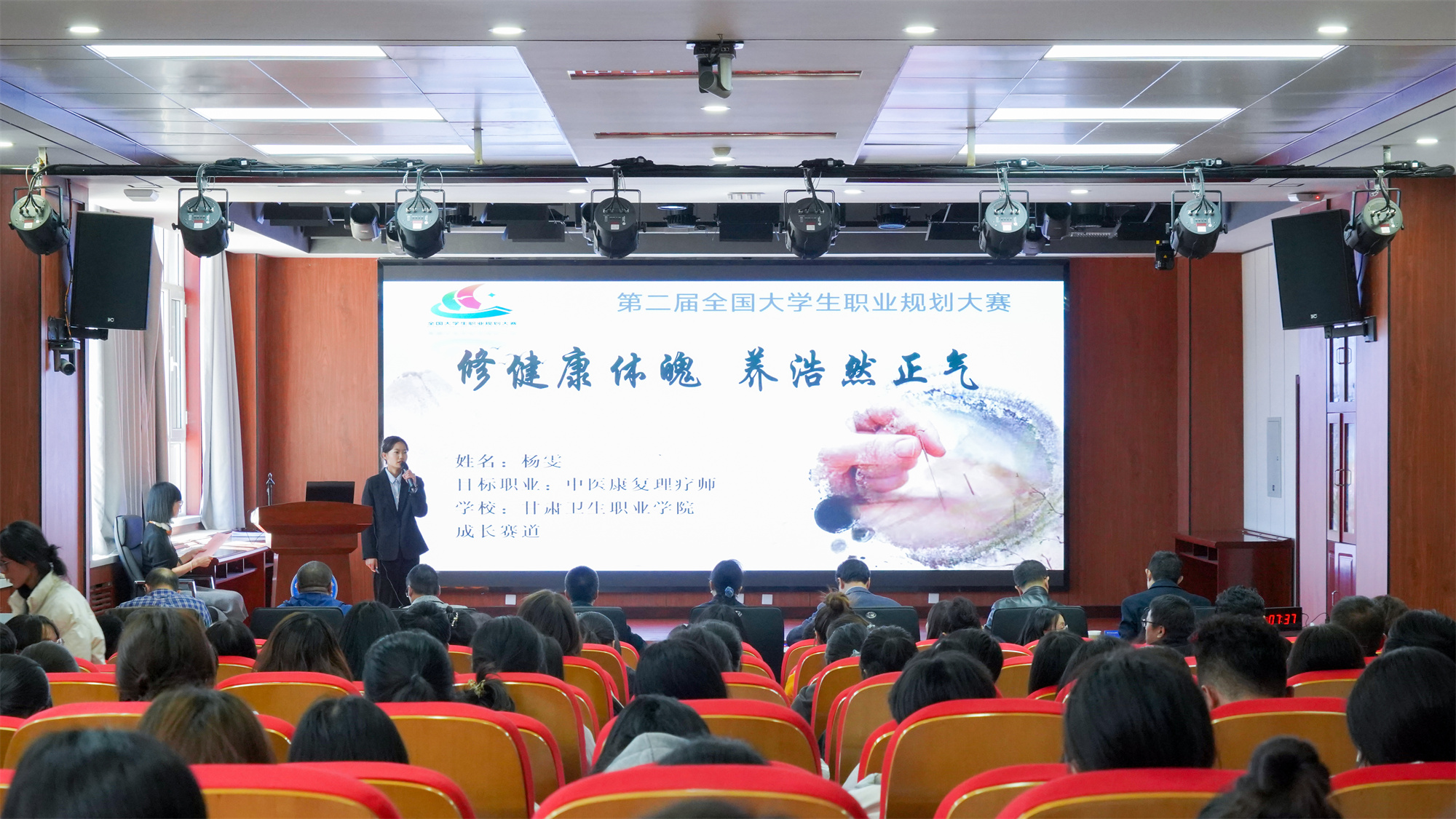 本次比赛活动自8月份启动以来,经过班级报名、院级初赛、复赛层层选拔,共有35名选手入围校级决赛。校级决赛参照首届全国大学生职业规划大赛形式进行,分成长赛道和就业赛道两个赛道比赛,每个赛道设置主题陈述和评委提问两个环节。各位选手结合专业优势和兴趣爱好,从自我认知、岗位分析、求职规划与实施路径等方面对自己的职业实现进行全面展示。评委们结合选手现场表现、陈述内容进行提问。
