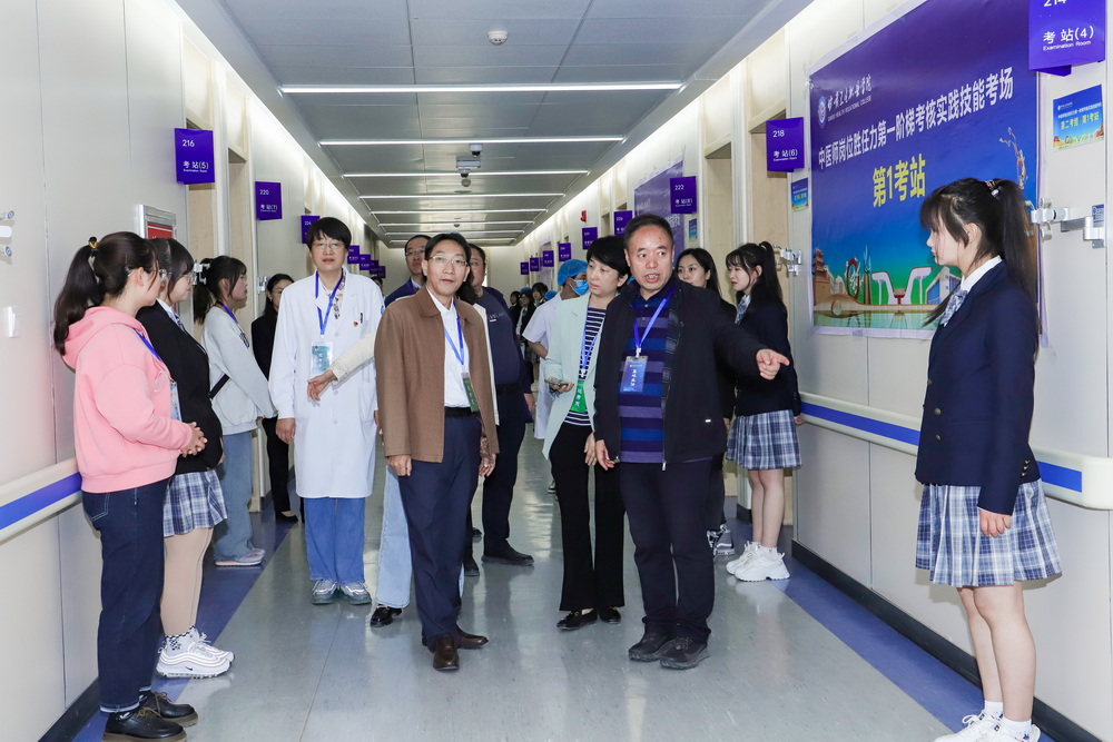 考核分为理论和实践技能考核两部分理论考核设在信息中心,共5个考场,主要考察中医理论知识、医学人文素养、卫生法规等内容实践技能考核设在临床医学系二楼标准化考站,共3个考组,9个考站,主要考察病史采集、中医技能和西医技能操作等内容。考场秩序井然,考生们镇定从容、操作娴熟,考官公平严谨、一丝不苟