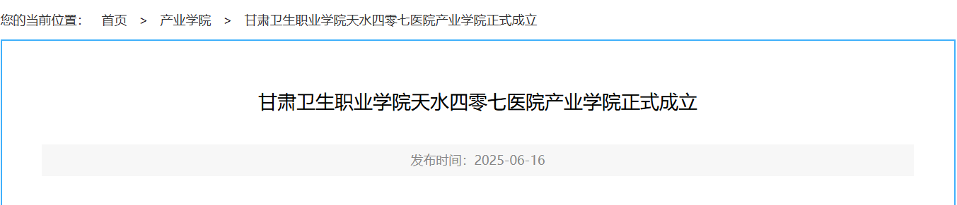 今后,甘肃卫生职业学院将以天水四零七医院产业学院为平台,发挥产教融合的系统性牵引作用,充分发挥行业、医院的优势,更紧密地对接产业需求、优化专业结构,形成“供给-需求-供给”闭环反馈,促进产业需求侧和教育供给侧精准对接,努力构建形成“产教学研用”五位一体的联合人才培养机制,提升人才培养质量,为健康中国、健康甘肃贡献力量。
