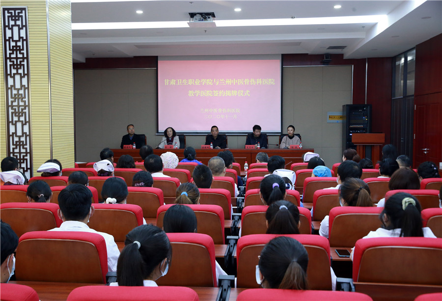 仪式上,甘肃卫生职业学院校长任晖与兰州中医骨伤科医院院长潘建西签订《教学医院协议书》《医共体协议书》,为甘肃卫生职业学院兰州中医骨伤科医院教学医院揭牌。兰州中医骨伤科医院院长潘建西为甘肃卫生职业学院教学医院授牌。
