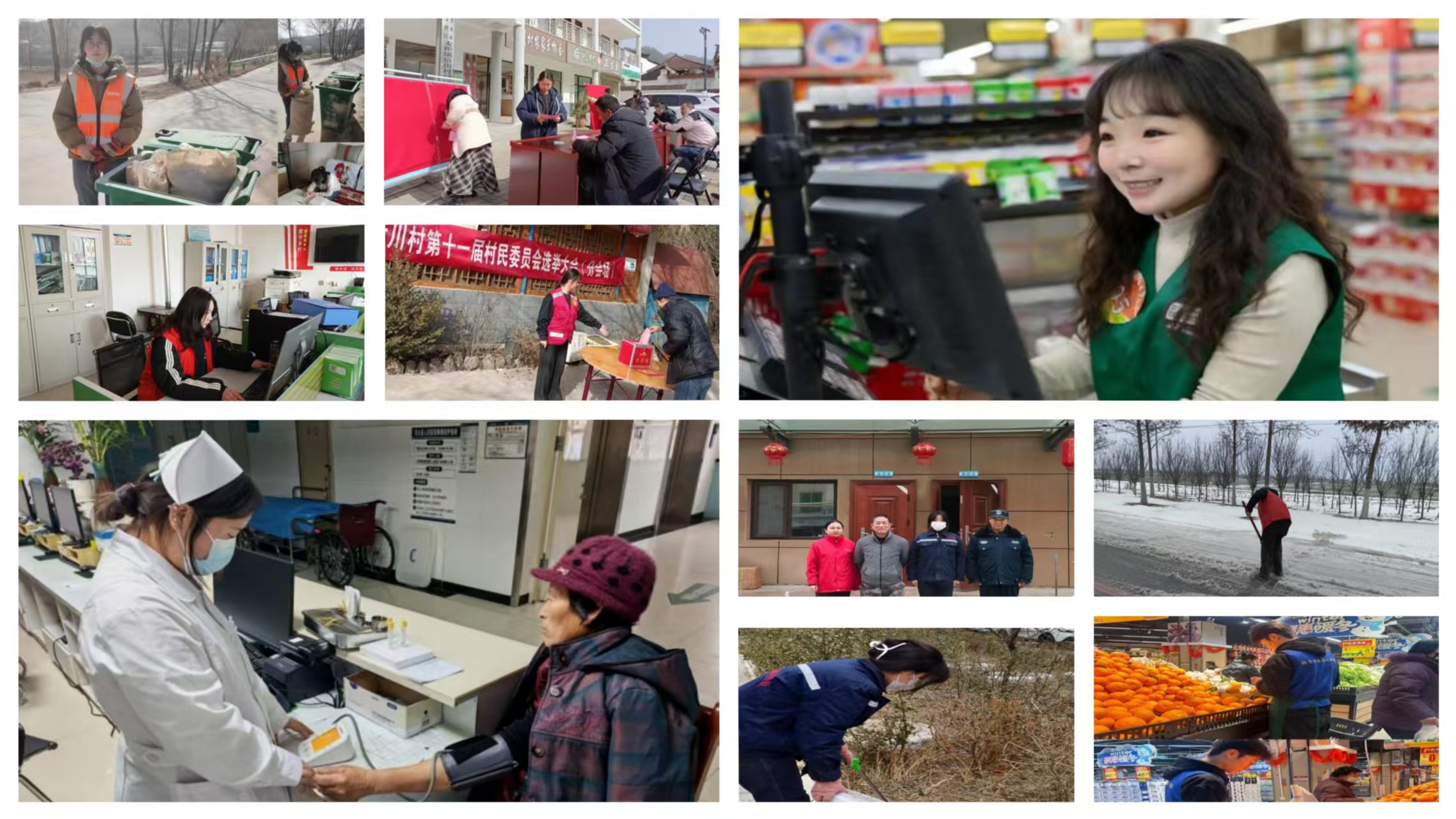 实践现场,学子们在不同岗位上发光发热。基层服务中,2025级护理三年制159班卢芹在先锋乡卢马村村委会协助政策宣传、资料整理等工作,用接地气的沟通方式传递惠民政策,在琐碎事务中体会基层治理的温度与坚守;2024级助产三年制27班朱雪莉参与村级投票选举志愿工作,引导村民签到、讲解选举流程、协助计票,在看似细微的环节中守护公平公正,与村民的交流中感受乡土温情,深化了对基层民主与乡村治理的认知;2024级护理三年制136班吉婷在灵台县人民医院开展护理见习,在带教老师指导下学习与患者沟通、基础护理等技能,将课堂理论转化为临床实践,坚定了成为“有技术、有温度、有担当”护理人的信念。志愿服务里,2025级护理三年制164班郑燕燕化身乡村除雪志愿者,冒寒铲冰开路守护邻里出行安全;2025级护理三年制156班朱建荣为小区挂灯笼、清杂物,用劳动营造温馨新春氛围;2024级护理144班马世桃投身渭源公益环卫岗位,同时沉心梳理专业知识,实现服务与学习双提升。兼职历练中,2024级助产三年制27班杨瑶、 2024级护理三年制144班郭佩学子在超市岗位深耕服务,于理货、答疑、售卖中锤炼沟通能力与责任意识,体会劳动的价值与不易。