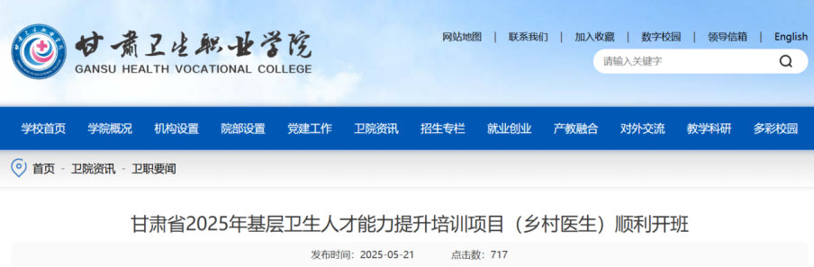 5月20日,甘肃省2025年基层卫生人才能力提升培训项目(乡村医生)在学校正式开班,本次培训由甘肃省卫生健康委员会主办,甘肃卫生职业学院承办,来自陇南、临夏、白银等地州市的163名乡村医生(第一批)将在学校开始为期一个月的培训。