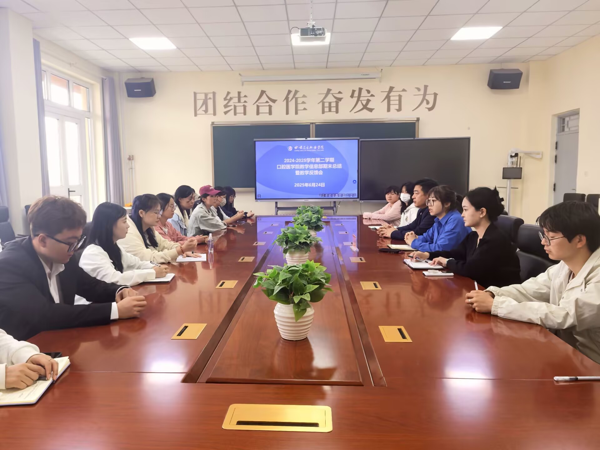 为提升课堂质量,了解学生学习状态和教学需求,做好师生沟通工作,6月24日13时口腔医学院组织召开2024-2025学年第二学期教学信息部期末总结暨教学反馈会。学院领导、教研室主任及各班级学生代表参会。