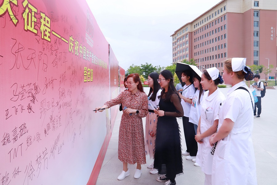 6月22日下午,甘肃卫生职业学院庆祝中国共产党成立100周年图片巡展活动启动仪式在雕塑广场拉开帷幕,学校全体党员及部分学生参加了此次活动。