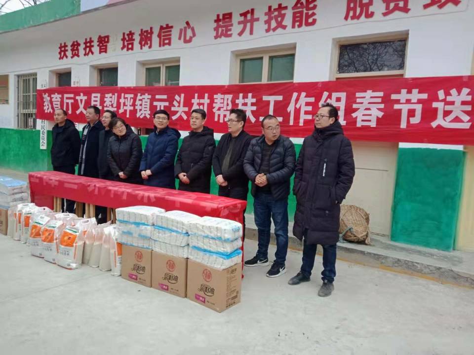为响应国家关于深入推进精准扶贫、精准脱贫的号召, 1月5日,在省教育厅安全稳定处焦鹏宁处长的带领下,教育厅政策法规处、教育厅人事处、教育社、甘肃卫生职业学院等工作人员赶赴元头村开展新春送温暖活动,此次送温暖按每户一桶油、一袋米、一袋挂面的标准发放。同时看望在脱贫帮扶第一线的工作人员。