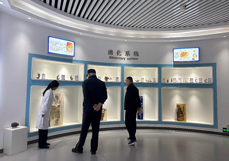 讲解中,王婷老师围绕人体九大系统、组织胚胎学、血管铸型标本及人体全身矢状断层切片等核心展区开展科普活动,科普人体结构与生命发育奥秘,结合大体标本直观展示正常组织与病理变化。活动还设置医学生誓言重温环节,引导大家感悟“健康所系、性命相托”的医学使命,树立敬畏生命、尊重科学的理念。