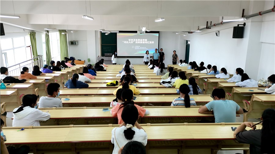 为调动我校学生英语词汇学习积极性,提高学生学习英语兴趣,营造校园英语文化氛围,我校公共基础学院英语教研室、甘肃省职业教育教改项目-基于移动学习的高职英语词汇教学改革研究项目组近日联合举办了甘肃卫生职业学院首届“词达人”杯高职英语词汇竞赛活动。比赛分预赛、决赛两个阶段,预赛于6月21日举行,全校共有1430名学生报名参加,根据比赛成绩排名,前80名学生进入决赛。6月23日下午,决赛在二号教学楼207教室举行。