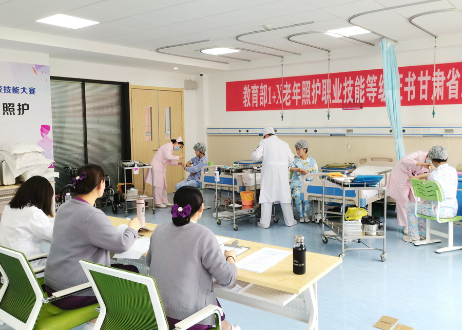 学校2021年通过审批成为老年照护职业技能等级证书考核站点,开展培训及考试工作。5月21日,2022年“1+X”老年照护职业技能等级证书(中级)考试在我校顺利举行。本次考试由中国社会福利与养老服务协会、北京中福长者文化科技有限公司组织,甘肃考评站对考核站点组织实施考试进行全程督导检查。
