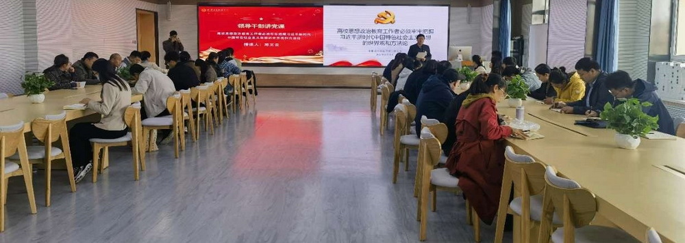 10月18日上午,在信息中心405平板教室,邱文云副校长以“高校思想政治教育工作者必须牢牢把握习近平新时代中国特色社会主义思想的世界观和方法论”为主题,为机关第四党支部、马克思主义学院教师党支部讲授了一堂严肃认真的主题教育专题党课。