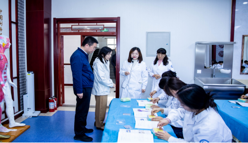 黄辉先后来到中医学院、药学院、护理学院,详细了解学校课程建设、实验室建设、人才培养、校园文化建设等情况。对学校的优质的医学教育资源与实验室条件给予充分肯定,对学校近年来在新医科技能人才培养方面取得的成效给予了高度赞扬。