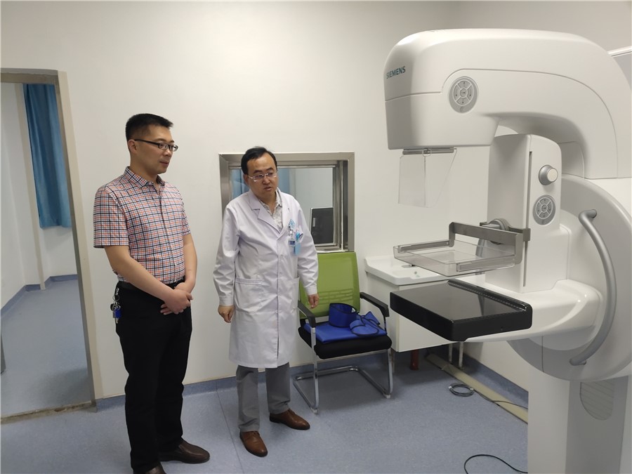 兰州新区中川人民医院医学影像科主任马晓涛热情接待了医学技术学院4位教师。首先,马晓涛向教师介绍了影像医学科目前所开展的医学影像检查与诊断项目、科室人员构成、二期医学影像科建设及设备采购等。之后,在马晓涛带领下依次参观了CT室、DR室、乳腺钼靶室、数字胃肠机室等,并进行了详细的讲解与介绍;针对各种影像设备功能及其临床应用,张春雨与马晓涛进行了积极有效的交流。最后,双方在我院医学影像系师生见习、实习、进修、竞赛训练等方面达成了初步合作意向。