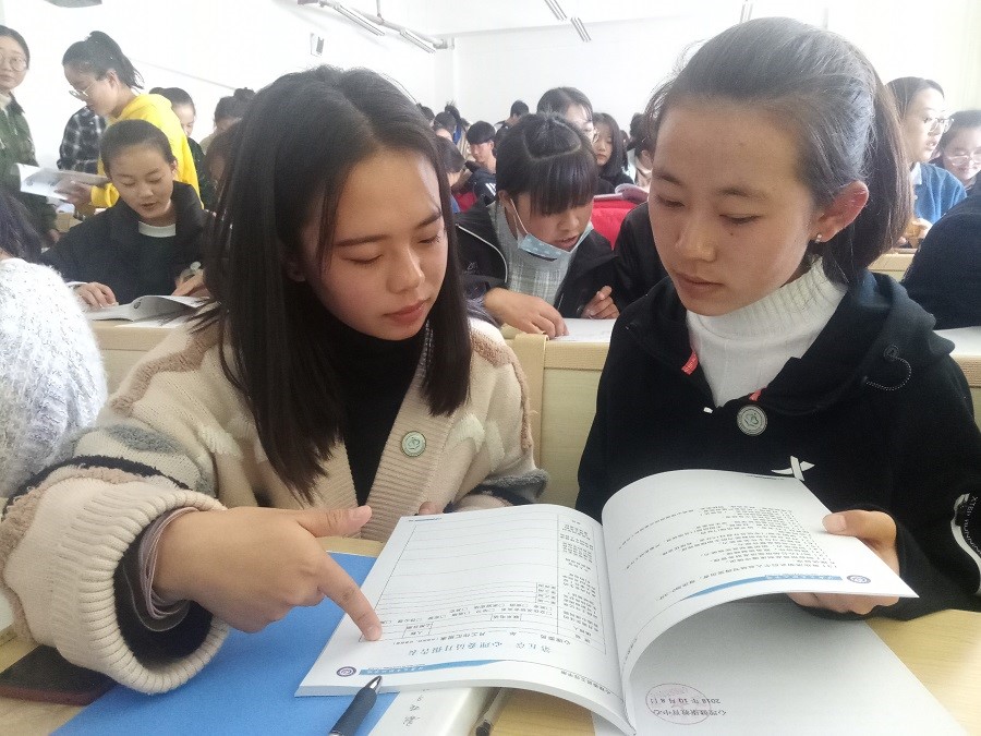 会上,中心所有老师为学生干部代表发放心理健康教育中心徽章,中心干部为心理委员代表发放徽章,结成小组的17级全体心理委员为18级全体心理委员发放中心徽章、职业院校同伴心理辅导实案读本《让你我的心田更阳光》、心理委员工作手册,并毫无保留地传授经验、教授填写规则等。这是一个代代传承的集体,18级的心理委员在17级学姐学长的带领和帮助下必将走的更稳、更远。而他们的经验也将在未来不久的时刻传给新一级的心理委员。
