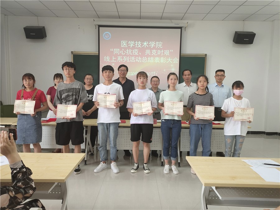 医学技术学院在疫情防控期间,为充分激发和调动全院师生积极参加抗疫行动,投入学院教学育人活动的积极性和热情,助推学院在疫情防控期间的各项工作积极向上开展,使学院的建设发展不停步、不减效,取得学院疫情防控和常规建设发展工作两手抓、两不误、两促进的良好效果,开展了以“同心抗疫、共克时艰”为主题的抗疫行动线上系列专题活动。系列活动共有五项内容,分别是线上论坛、师生微视频大赛、师生医学专业绘画大赛、师生抗疫征文大赛及师生硬笔书法大赛。活动开展以来,学院师生积极参与,取得良好效果,为总结活动取得的成绩和经验,表彰活动中涌现出的先进个人,6月30日下午,学院在学院会议室召开“同心抗疫、共克时艰”线上系列活动总结表彰大会,全体院领导、专兼职教师、辅导员及学生获奖代表参加,会议由院长张志钢主持。