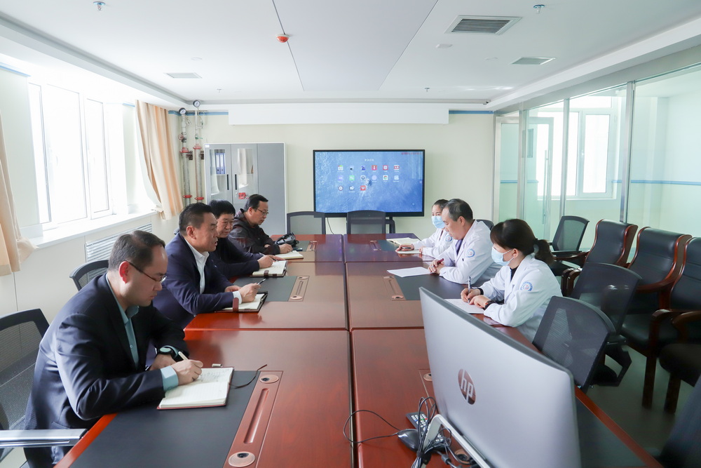 包书记带领调研组成员对附属医院中医区、药房、放射科、体检中心、住院部等功能区域进行实地调研,详细了解运营情况。附属医院院长汇报了附属医院的基本情况、发展方向、存在问题以及解决思路,高博副校长进行了补充发言,与会人员对于相关问题进行了充分的讨论。