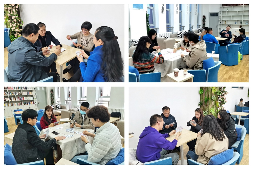 为丰富广大教职员工的业余文化生活,调动职工参加集体活动的积极性,激发职工团结拼搏精神和工作热情,增进职工友谊,加强合作交流,营造和谐氛围,缓解工作压力,学校工会充分利用扑克牌讲究团队合作、娱乐为主的游戏特点,于3月中旬到4月上旬在职工之家组织举办了学校教职工扑克牌比赛活动。