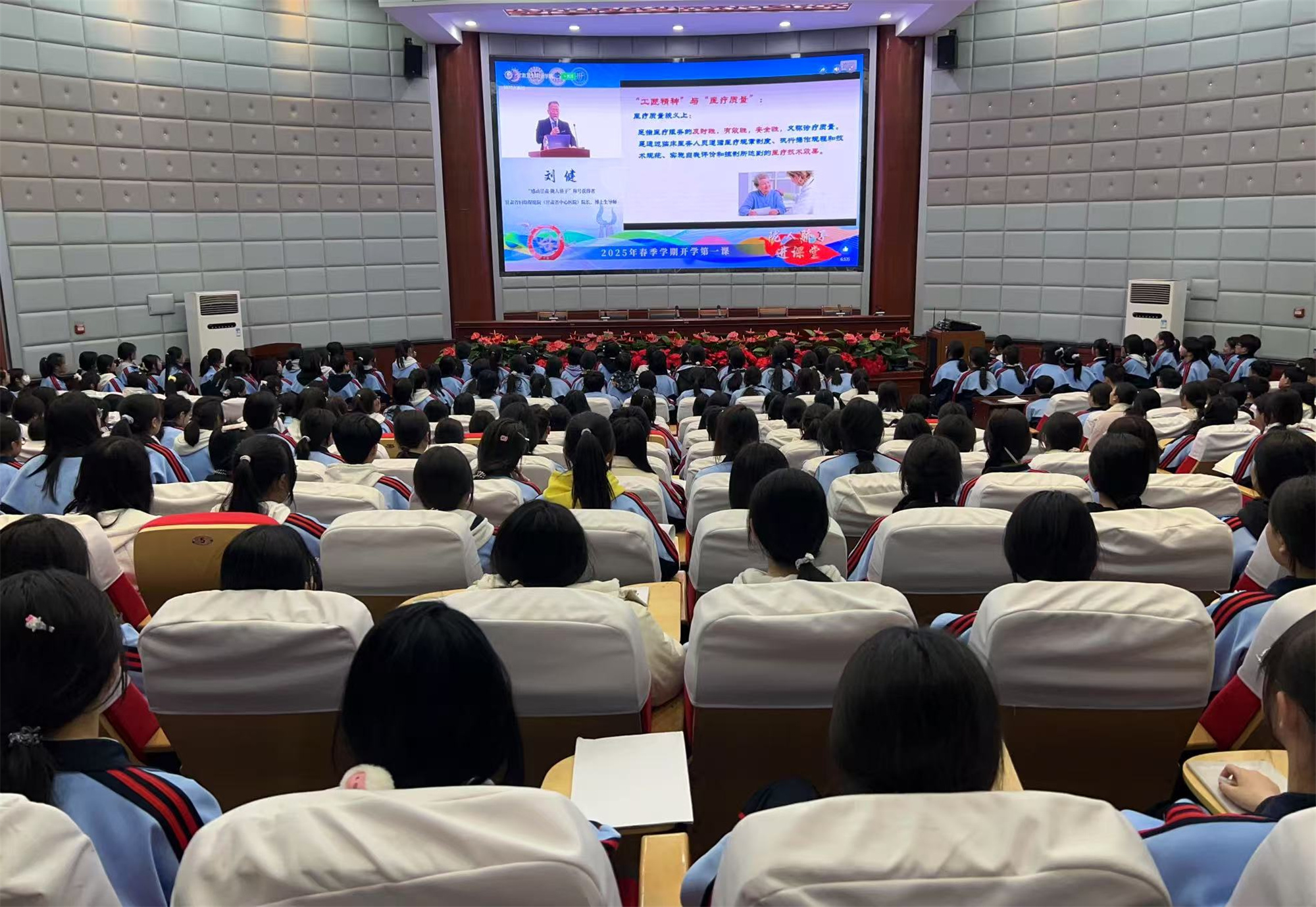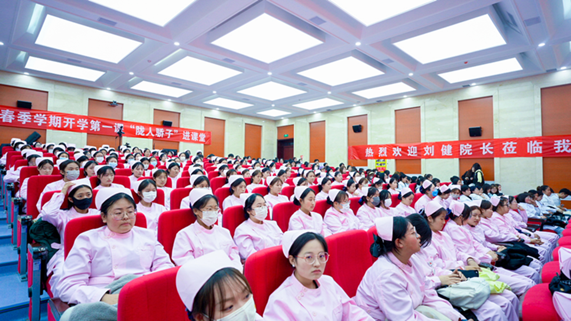 3月3日晚,甘肃卫生职业学院携手甘南州卫生学校、陇南市卫生学校、天水市卫生学校以线上线下联动形式开展2025年春季学期“开学第一课”思想政治教育活动。本次活动特别邀请到“感动甘肃 陇人骄子”荣誉称号获得者、甘肃省妇幼保健院(甘肃省中心医院)党委副书记、院长、博士生导师刘健教授担任主讲,四校师生通过云端共聚,开启新学期的思政教育第一课。活动采用“线上直播+分会场联动”模式,主会场设于甘肃卫生职业学院笃学楼学术报告厅,全部在校班级教室及三所卫校设分会场,全体实习生通过微信公众号、抖音直播等平台同步参与,四校共一万七千余人参加活动,直播线上观看数达到7626人次。学校全体在家校领导现场出席活动,党委副书记、校长王建成主持活动。