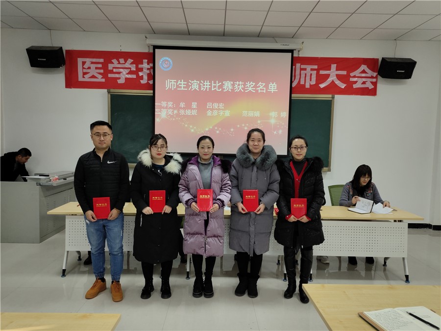 会上,副院长张春雨与学院党总支副书记郭艳玲分别宣读了《关于表彰庆祝医学技术学院成立一周年系列活动获奖者的决定》与《关于表彰医学技术学院青年教师教学能力提升班优秀学员的决定》。副院长吕荣光从系列活动的有益经验、反映出的问题及取得的良好成效等方面对新入职教师“亮相课”活动、教师说课比赛、师生演讲比赛、学生文明宿舍评比活动、优秀校友报告会、师生座谈交流会六项活动逐一做了分析总结。之后,进行了获奖者颁奖仪式,并分享观看了师生演讲比赛一等奖获得者牟星老师题为《用“盘他”的心筑梦前行》的演讲比赛录像,大家再次感受到了牟星老师精彩演讲的震撼与激励。