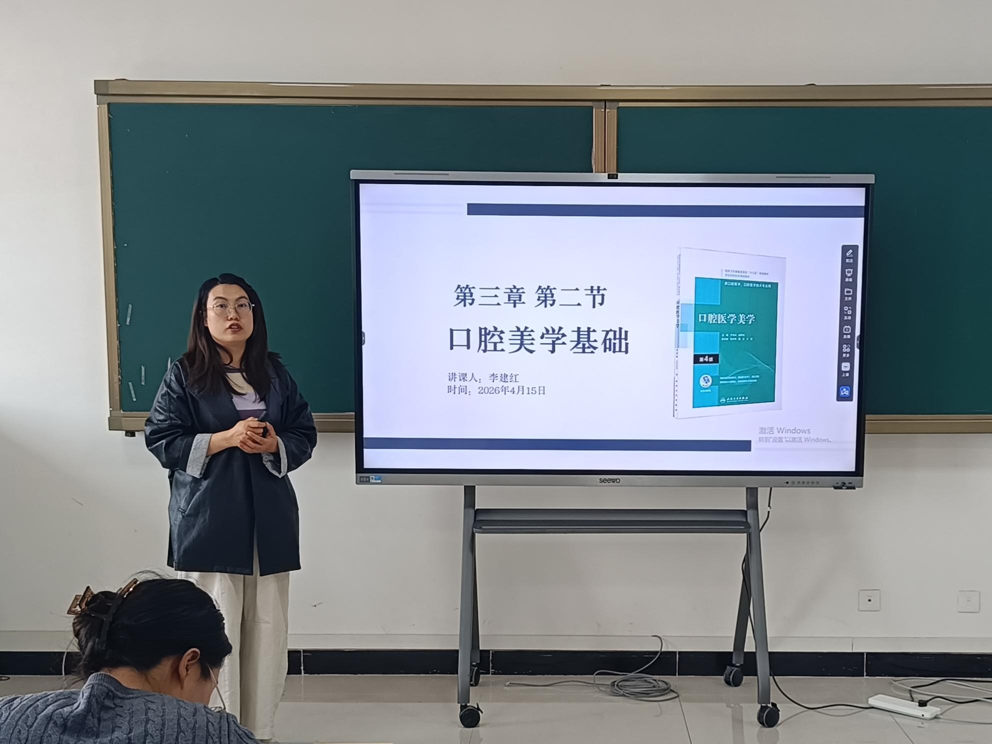 随后,李建红老师围绕《口腔医学美学》课程开展了集体备课,她首先分析了授课对象的学情特点,指出我院学生的美学基础薄弱,明确了教学重点为面部美学与牙体形态原则,难点是美学理念在修复中的运用;最后重点介绍了教学方法与策略,包括案例导入、美学设计实操等。
