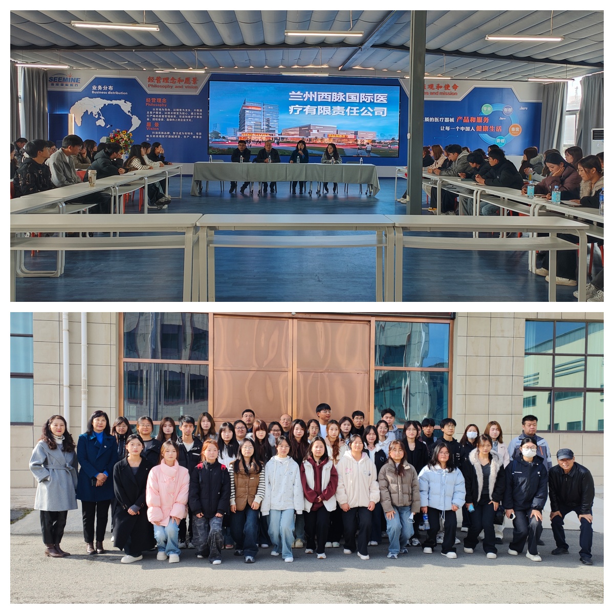 11月14日,医学技术与工程学院领导、辅导员及实习就业指导老师带领医学影像技术、智能医疗装备技术专业35名学生,赴兰州西脉国际医疗集团有限公司开展参观研学活动,为学生搭建理论联系实际的桥梁,助力精准实习就业。