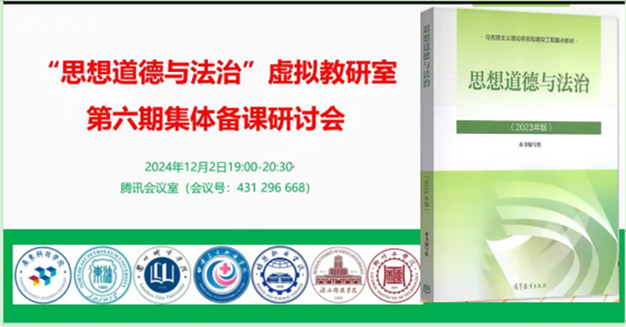 马克思主义学院组织召开“粤黑陇桂”手拉手“思想道德与法治”虚拟教研室集体备课研讨会发布时间:2024-12-04 -