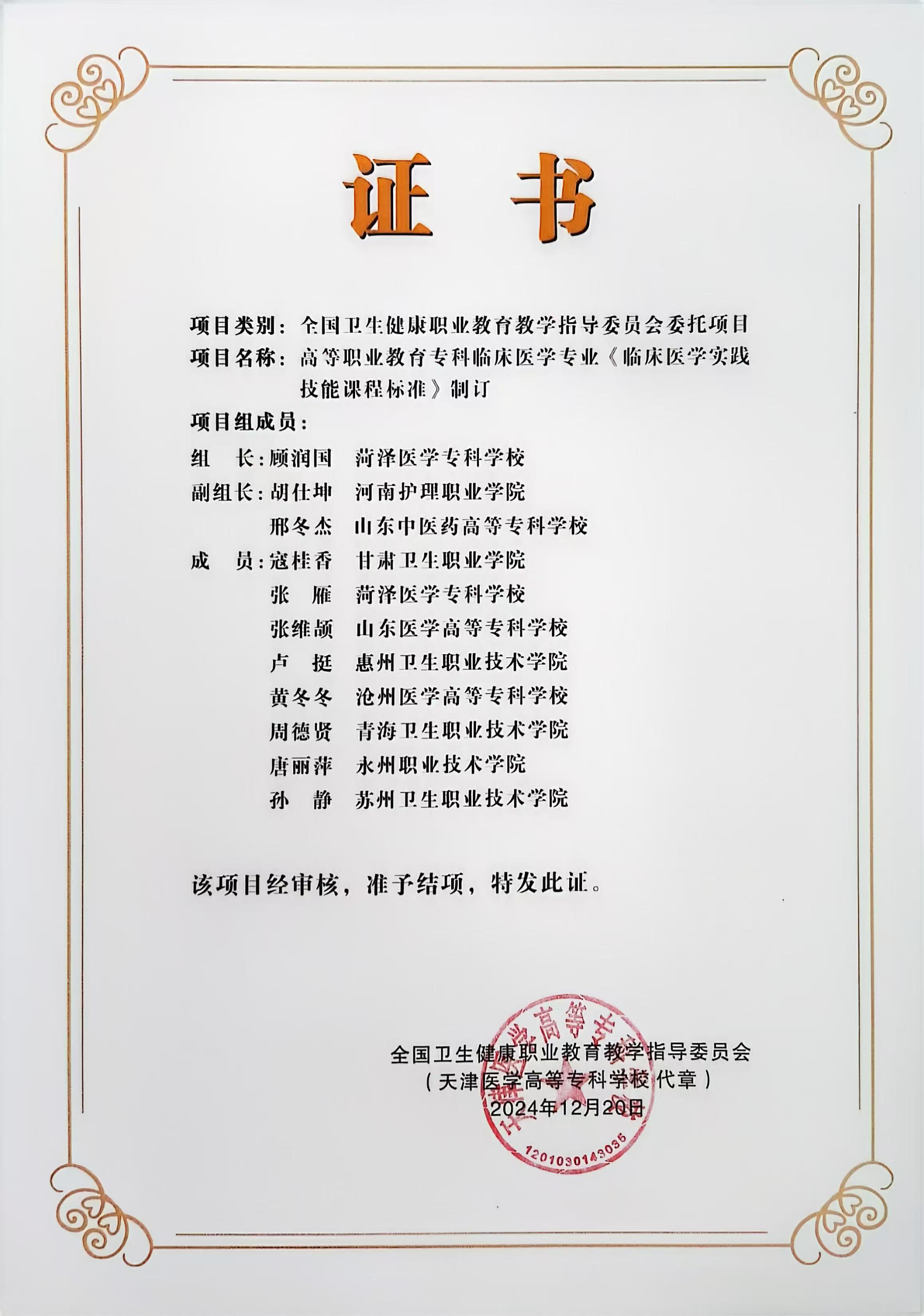 《临床医学实践技能》课程标准制定