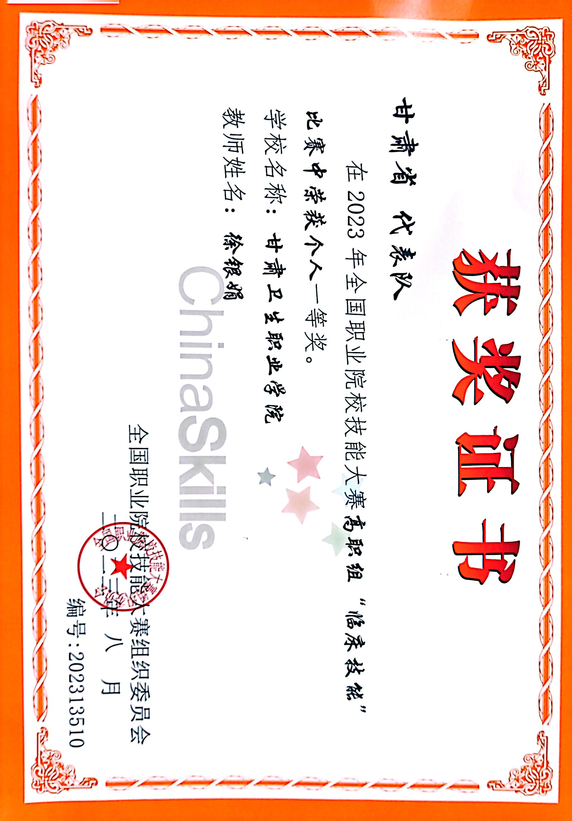全国临床技能竞赛一等奖第一名