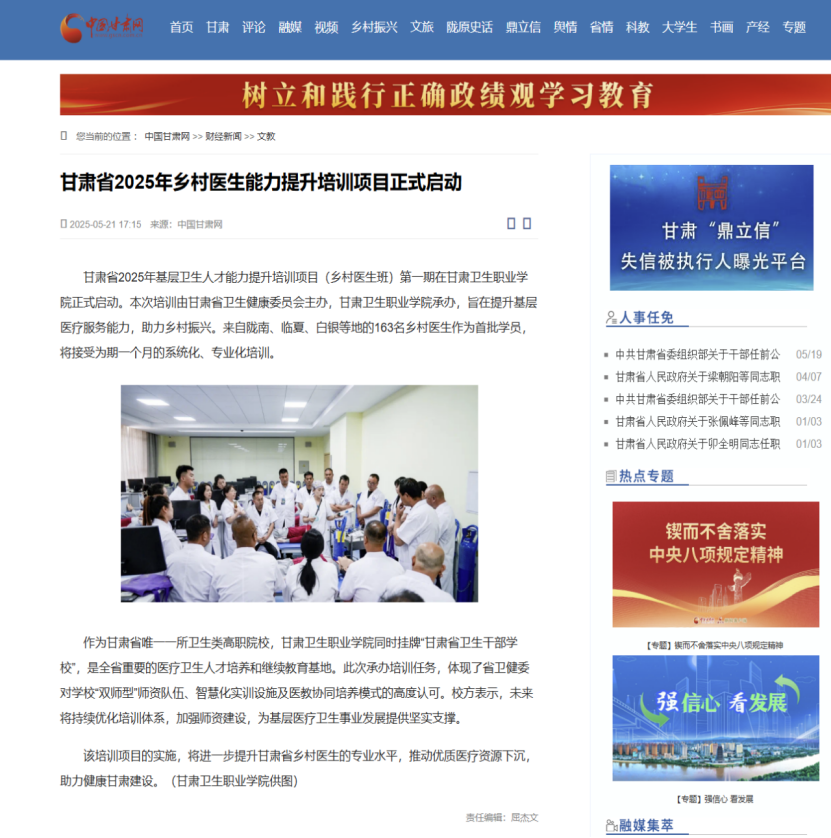 甘肃省2025年乡村医生能力提升培训项目正式启动——甘肃卫生职业学院官网
