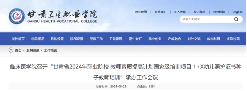 甘肃省2024年教师素质提升国家级培训项目——1+X幼儿照护证书种子教师培训