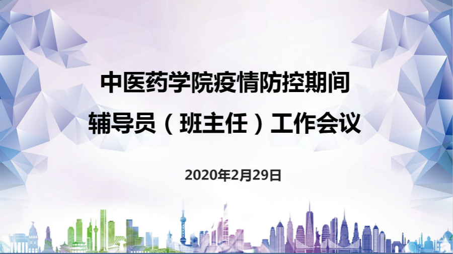 中医药学院疫情防控期间在线召开辅导员(班主任)工作会议发布时间:2020-03-01 -