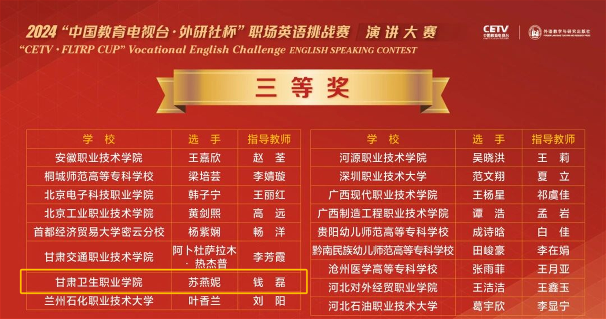 我校学生在2024“中国教育电视台·外研社杯”职场英语挑战赛全国决赛中喜获佳绩发布时间:2024-12-19 -